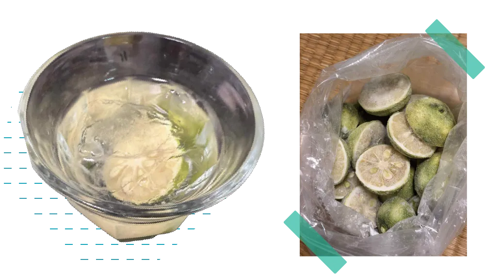 ちなみに、皮を剥いた後の柚子、切って冷凍しておくと焼酎を飲む時に便利でオススメです。